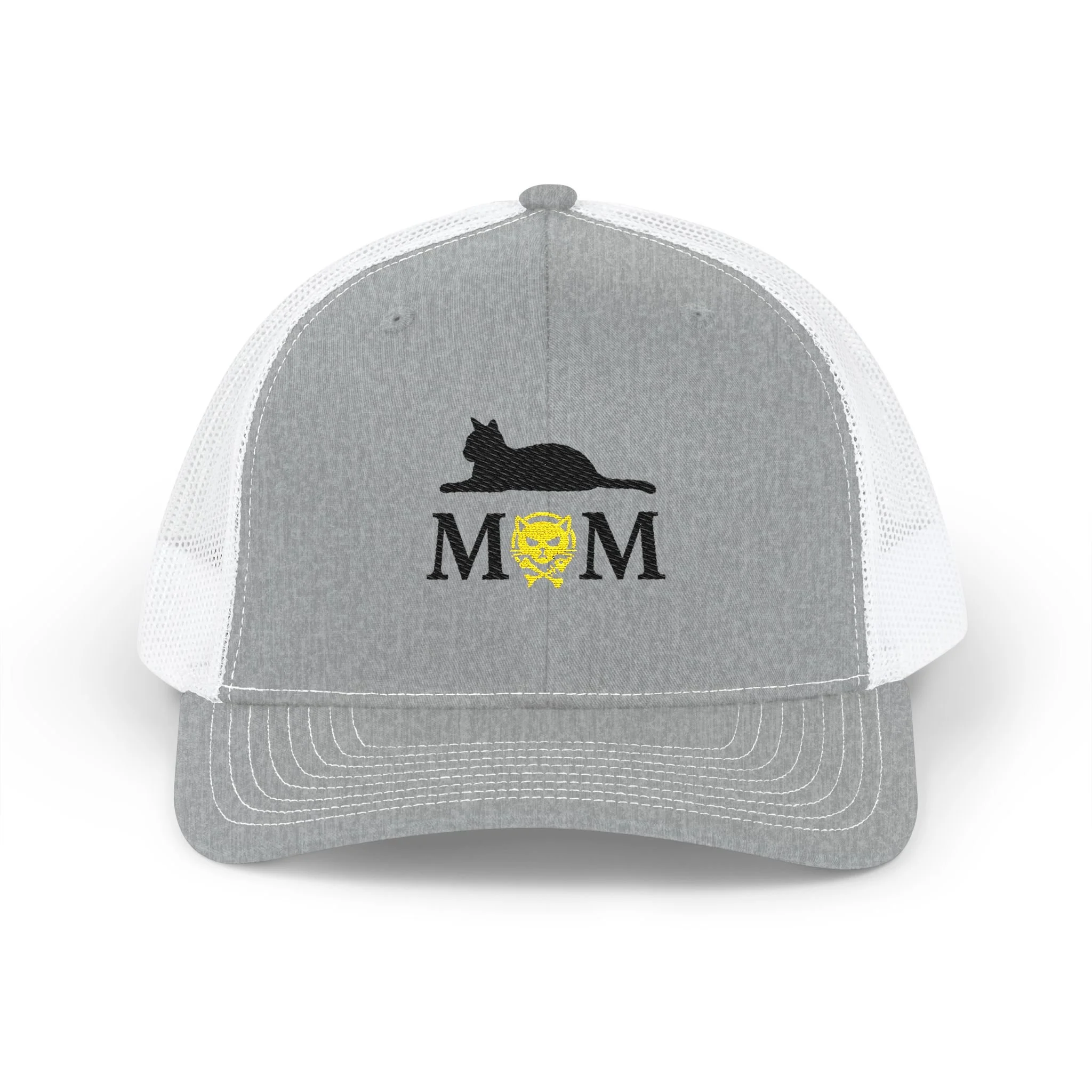 The Catison Mom Trucker Cap features a minimalist embroidered design with a sleek cat silhouette and our signature gold Catison emblem, symbolizing protection, love, and loyalty.