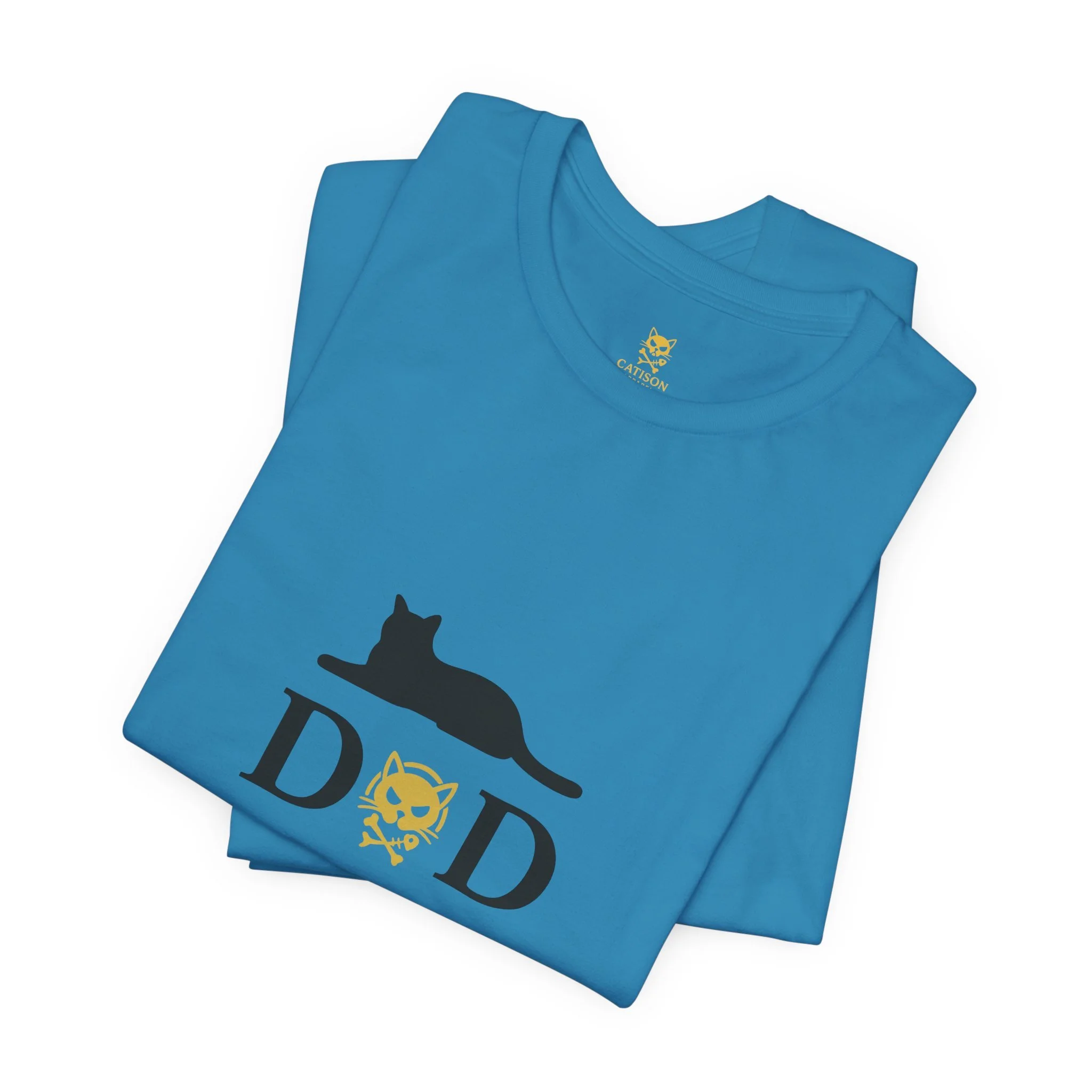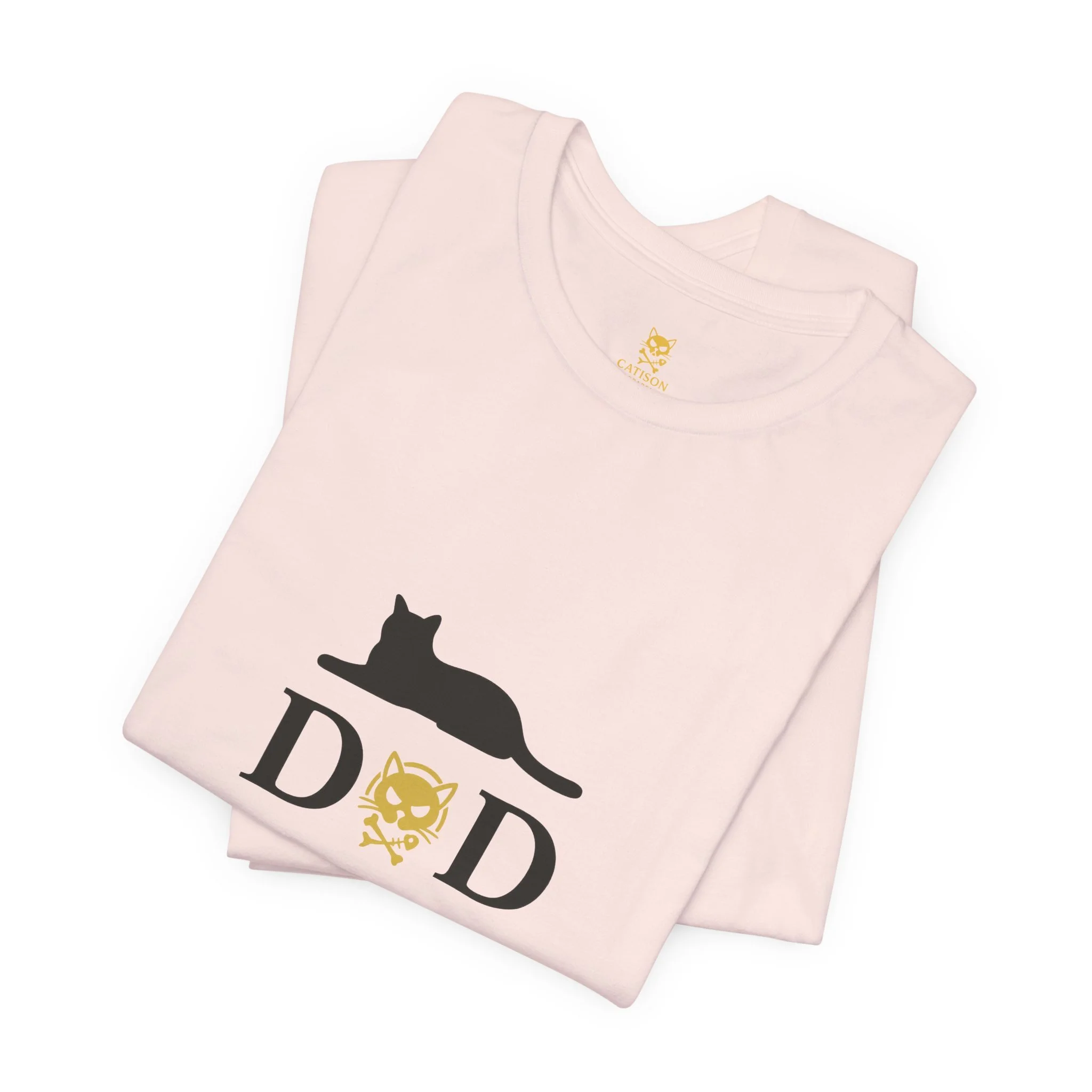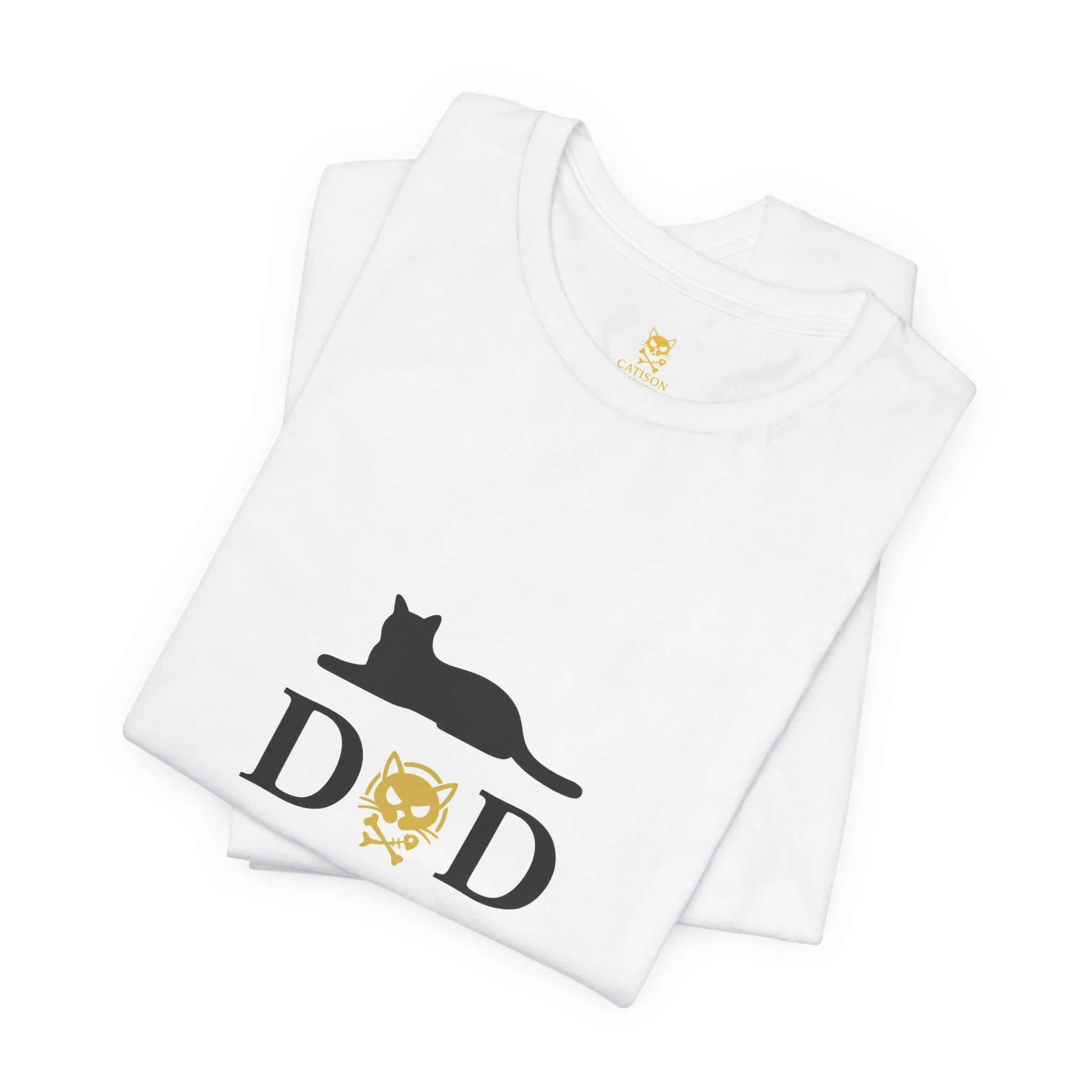 Celebrate cat-dad life in true Catison style 🐾 This exclusive tee features a sleek black silhouette of a lounging cat resting above the word DAD, with the iconic Catison gold logo proudly replacing the “A.”