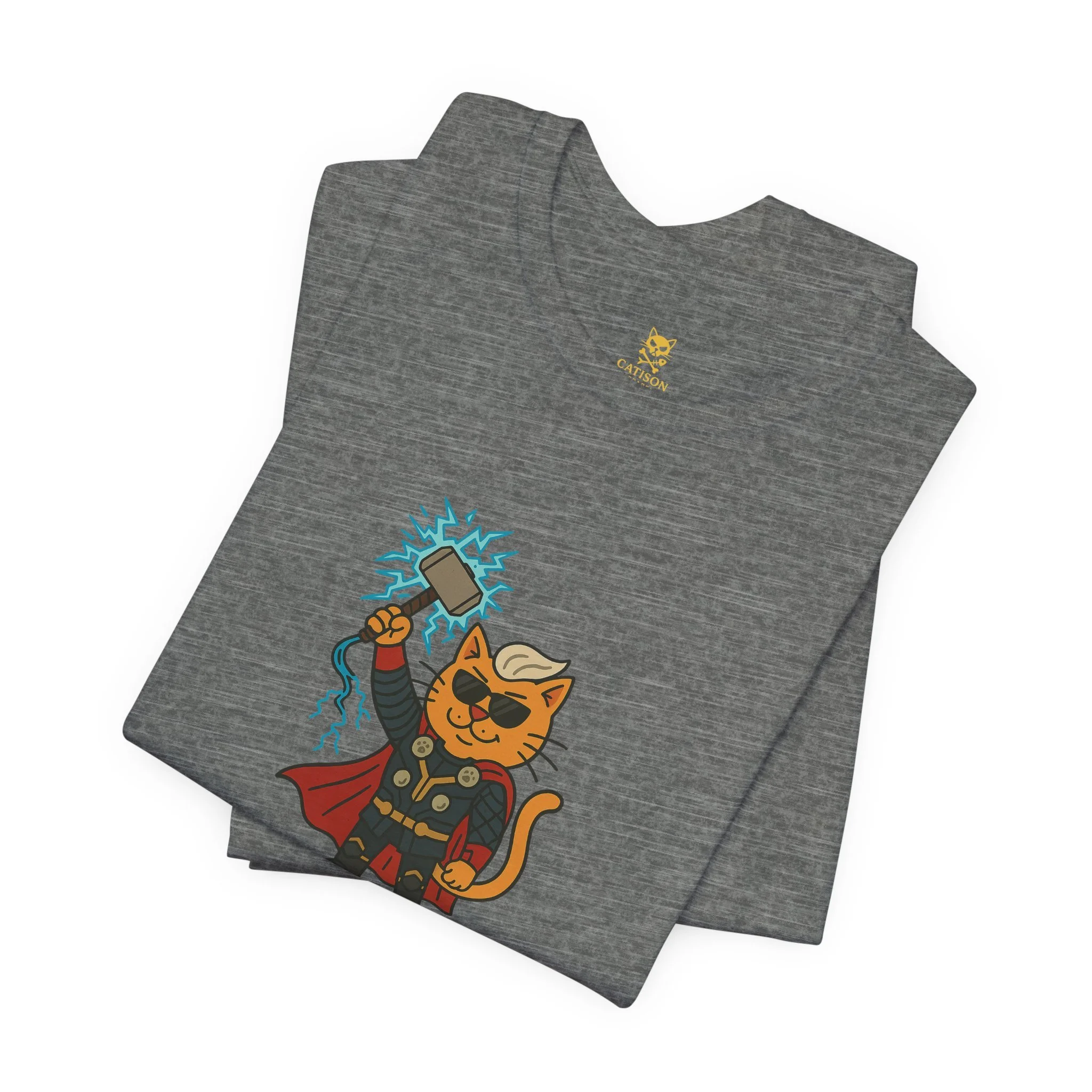 The Purr of Thunder Limited Edition Tee is a bold parody tribute to the legendary god of thunder—reimagined as an unstoppable feline hero. Armed with the mighty hammer Meowlnir, crackling with lightning, this cat brings power, confidence, and just the right amount of sass.