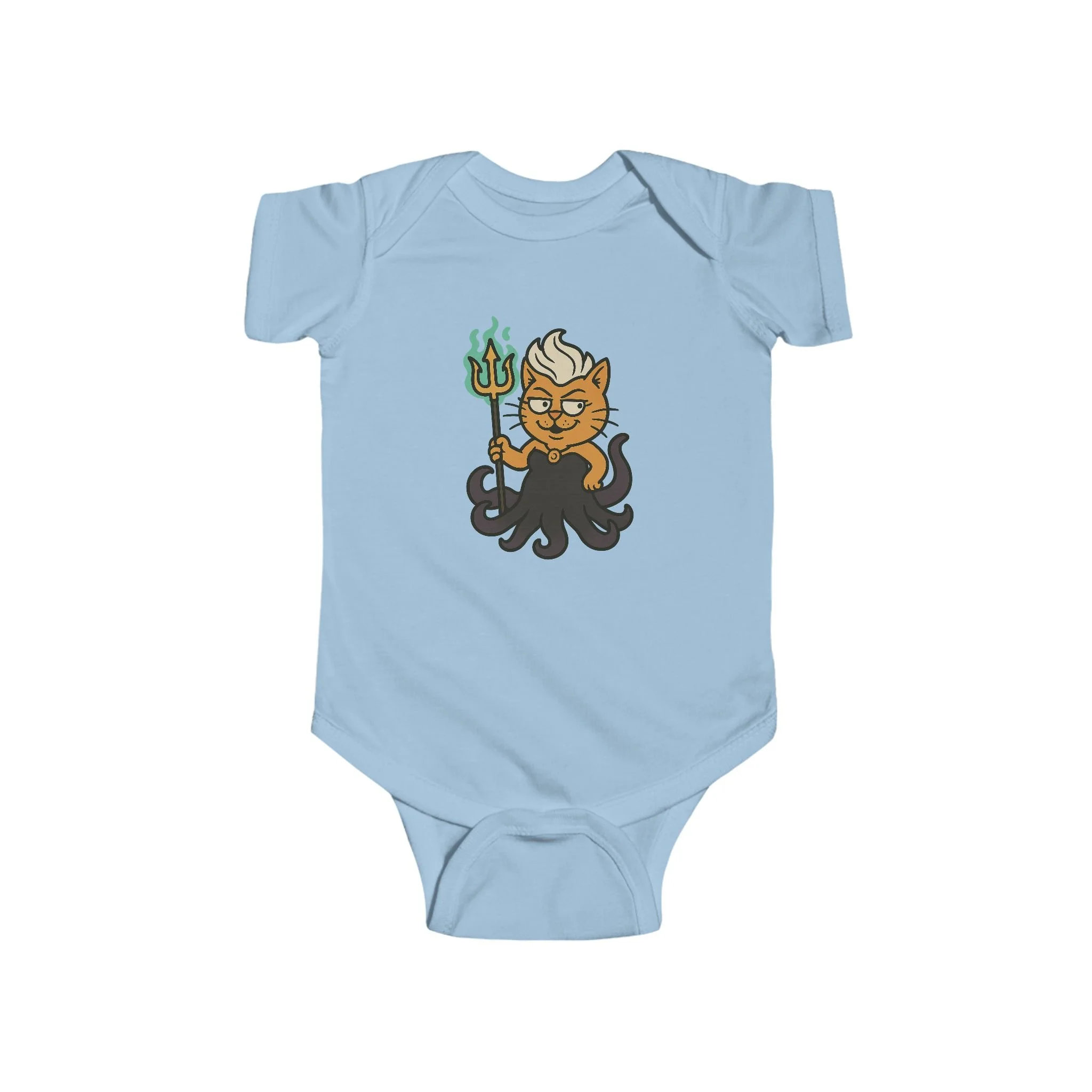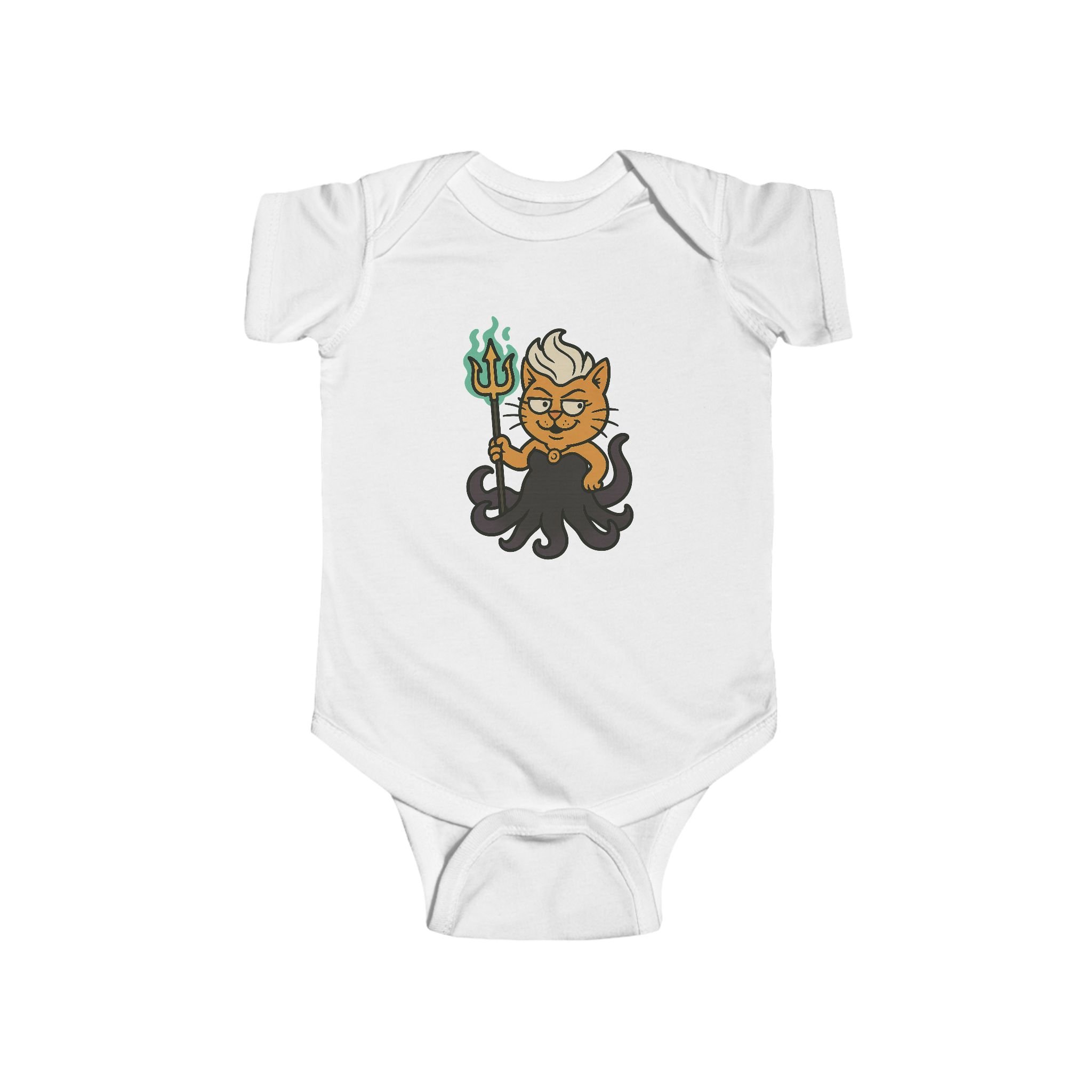 Give your tiny troublemaker a splash of undersea magic with the Purrsula Baby Onesie! Featuring our adorable yet delightfully mischievous feline sea sorceress, this design brings bold colors, charm, and a touch of playful attitude to your baby’s outfit.