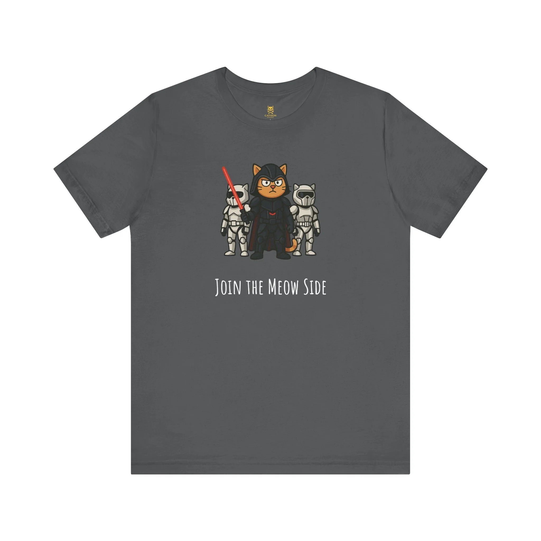 The force is feline. The Join The Meow Side Tee brings out your inner rebel with a playful twist on galactic style — starring our iconic cat ready to rule the dark (and stylish) side.